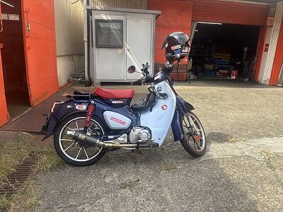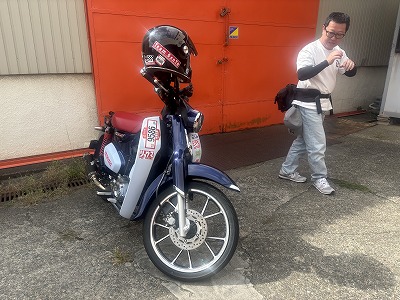 カブ125乗ってO様登場!C4の打ち合わせです。後でお土産まで頂いてしまってありがとぉ~ございまぁ~す\(^o^)/