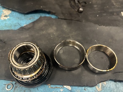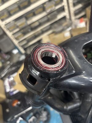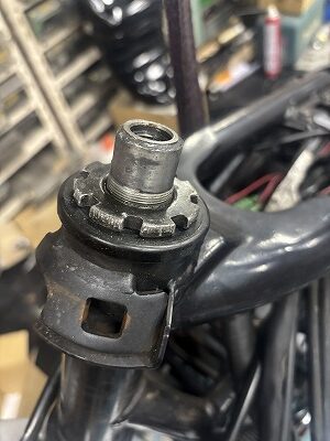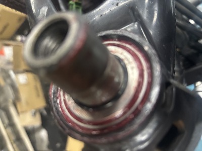 フレームに打ち込んであるレースにベアリングの打痕が・・・(あたしらのお仕事は、簡単に人の人生終了させてしまうお仕事なので・・・こういう作業見てしまうと・・・なんだかなぁ~って思うのであった)