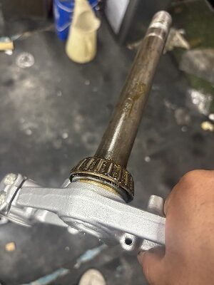 そっそんなぁ~ストッパーナットが一個ついてない・・・(いつゆるんでもおかしくない状態でした・・・本来ここは、軽くしめて、ロックナットでとめる構造です。ここゆるむとガタガタになります。)中々やるなぁ~しびれるぜぇ~怒