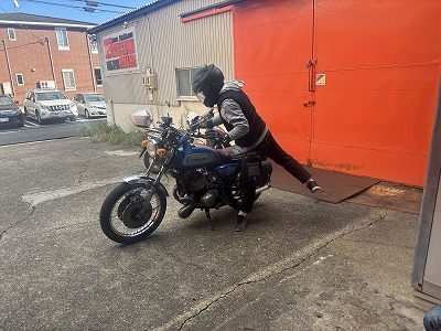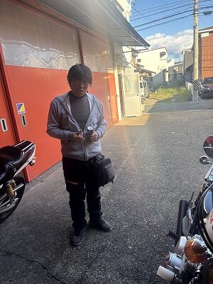 GSX250E(ザリ)のH様、タイヤ持ってきました。最新の安全グッツなんでしょうか?(職質案件ですなぁ~笑)