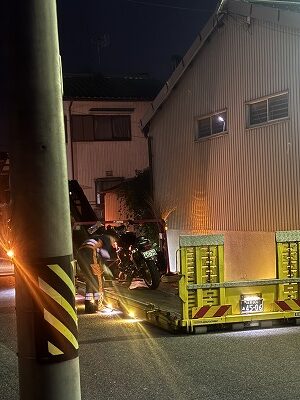 なんやかんやで、日が暮れて、途中雨降って、帰りそびれた、H様、雨やんだら帰って行きました。Fタイヤがフェンダーにこするみたいで、後日、直す約束してあげました。