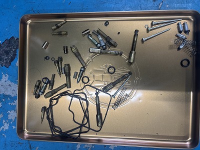 ザクザクばらして、Oリング等千切れて無くなってる所もあり、まぁ~年式的に古いので(今まで、何回かばらしては、組んでやってるでしょうから)ボロボロでした。