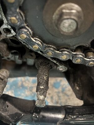 O様が、シフト周辺から、オイル漏れてるって言ってましたので、カバーはずしましたら・・・うんっオイルシールが抜けて砂利食ってギトギトだねぇ~(-_-;)(部品の方手配しまして)