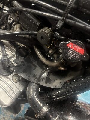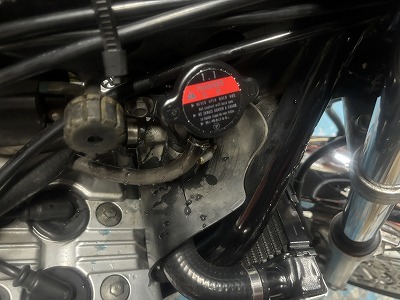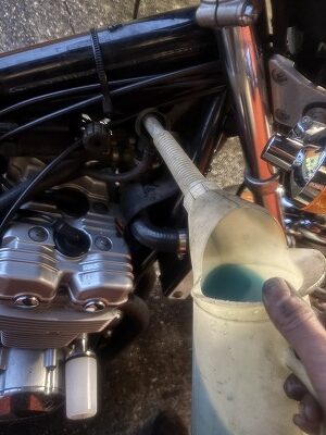 ラジエター液、交換です。リザーバータンク内にクーラントが少ししか入ってなかったので