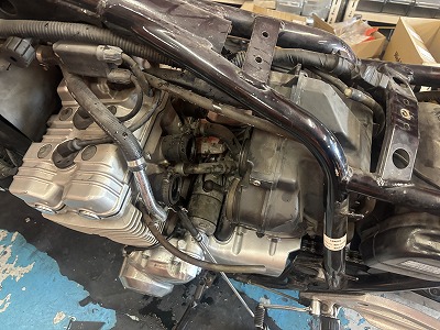 次は、H様のNC36キャブO/Hです。最近寒くなってきましたので、エンジンかけて(調子悪いですが)あっためてやらないと、ゴム類が割れますので、慎重にはずします。(部品が出ないので汗)