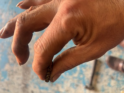 ガソリンの緑色になったカスがフロート室の底に・・・