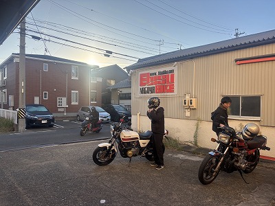 ブラックホーク(ザリ・GSX250E/黒鷲)のY君、7時に来ましたなぁ~