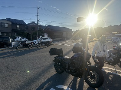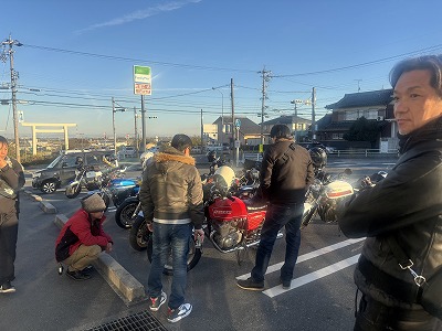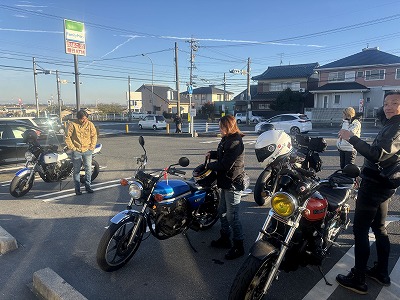 初参加の赤ザリ(GSX250E)のH様もみえましてU君は、ガソリン入れに行きまして