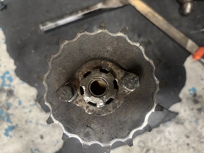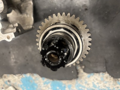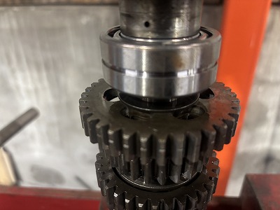 そんでもって、O様のC4(CB400F/ヨンフォア)ミッションベアリング交換です。フロントスプロケットが付く部分がクラック入ってまして(全然気づかなかった)少し大きくなっていて抜くのに苦労しました。(途中までギコギコ言って抜けてプレスで抜くのに、んっ!ってなりますからホンダさんの素晴らしい所は、きっちり寸法です。クラック入って少しゴミかんだ位でぎちぎちです。50年以上前の製品とは、思えない)スプロケット外すのにめちゃくちゃ硬くておかしいなぁ~って思ってはいたのですが(サビてるのかなぁ~って思ったのですが・・・)取り合えず削ってベアリング打ち換えまして