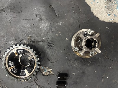セルスターターのハブダンパー替えまして、ワァンウェーの+ビス緩んでますのでしめなおしまして、たがねで緩まない様に打ち付けまして(90パーセント緩んでます笑)