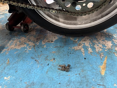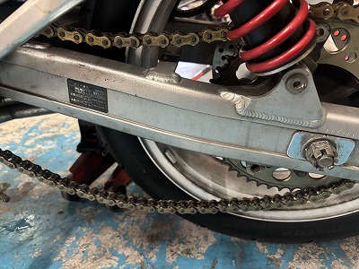 問題のチェーン交換したばかりで、チェーンがめいいっぱい引いてありまして、ダランダランだったので、チェーンカットしてコマ詰めです。