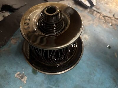 何の役にも立たないくしゃくしゃのオイルエレメント組んでありました(53)そんでもって、一番上に乗っかるプレート無いし・・・いっちゃ悪いですけど、これ絶対、解って組んでますよねぇ~(誰がやったか知らないけれど、ひどすぎる・・・)