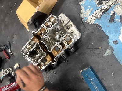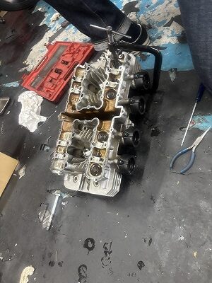 H様、自分のバイクは、自分で触りたいみたいですので、バラすぐらいならOKって事で、ヘッドのバルブ外してもらったのですが・・・