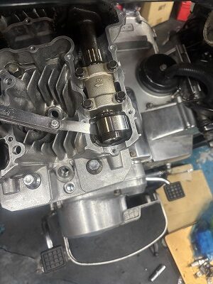 そんでもって、H様が塗った赤いオイルパン組付けまして