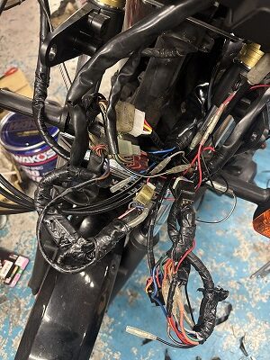 ええぇ~水曜日のお休みは、雨降ってますので、Y君のZ750GPのメインハーネス引き直しです。本来インジェクションなんですが、キャブ化してますのでハーネスは、少ないのですがY君の手作り配線がエクセレントに張り巡らされているので、すんばらしくめんどくさい笑