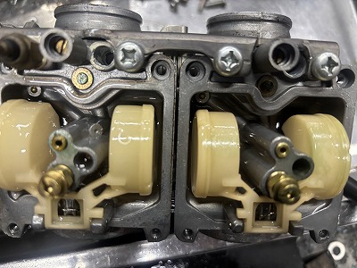 キャブを取り外しまして・・・たとえ、エンジンかかってましても、長年ガソリン使い切ってませんと・・・タンク内のガソリンは腐ります。
