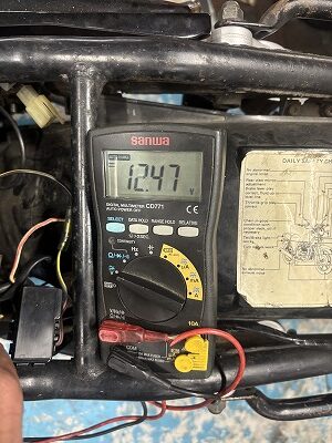 セルでエンジン掛けまして電圧チェックあれあれぇ~上がらないなぁ~レギュレーター終わってるのかなぁ~
