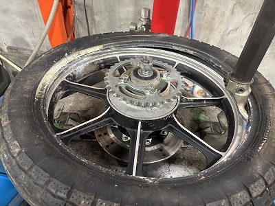 延長戦でN様のZ250FTのタイヤ取り外し作業が増えまして(ホイールも磨きたいと連絡がありまして)