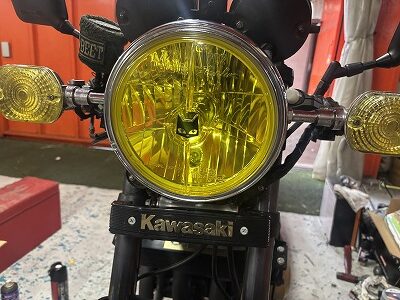 お友達のCBX400FのMさんから頂いた、HID屋さん所のLED(ハロゲン球色)に交換です。