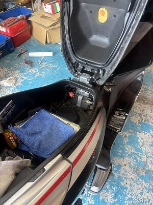 そして、PCX150のU君、バッテリー交換しに持ってきましてY君とU君、こないだのツーリングで仲良くなったので、にぎやかにわちゃわちゃ、やってました。なんやかんや、バイクのカスタムの相談事だったりされまして、仕事できませんなぁ~笑(これが仕事なんですが・・・笑)