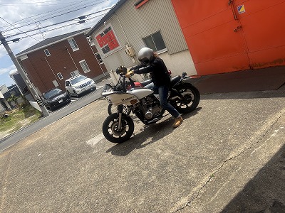 なんやかんや、バイク談義してましたら、ボブキャット(125TR)のM君も遊びに来ましてバイク談義でワイワイがやがや、Rタイヤ交換の依頼受けました。
