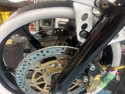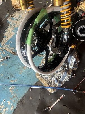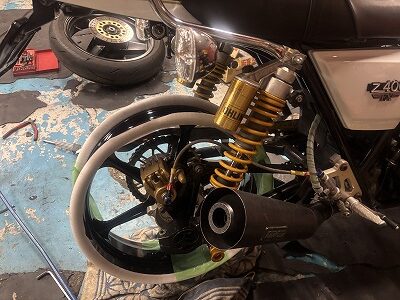 そんでもって、国家らは、遊びの時間で、T君のカスタムフェックス用にホイールが着弾しましたので、現物合わせで寸法をU君のZ400J改で取らさせていただいております。